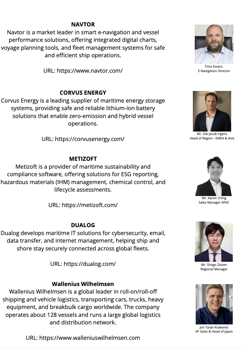 On the occasion of Sea Japan 2026 we invite you to join us to meet shipowners, maritime experts, and cutting-edge maritime innovators for an exclusive look at how technologies transforming global vessel operations at the intersection of digital technologies and energy-efficient solutions.